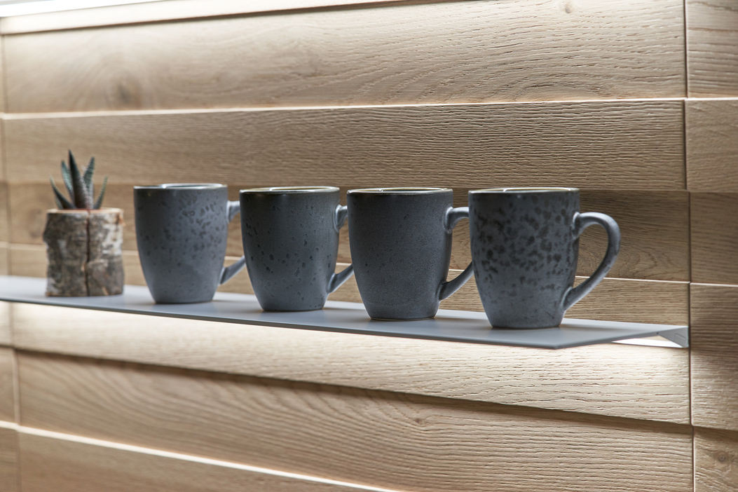 The kitchen is a "masterpiece": durable, solid, authentic. When you open the calm, handle-less fronts, a high-grade edge made of finely structured oak becomes visible – an expression of solid craftsmanship which lends the range considerable emotionality.